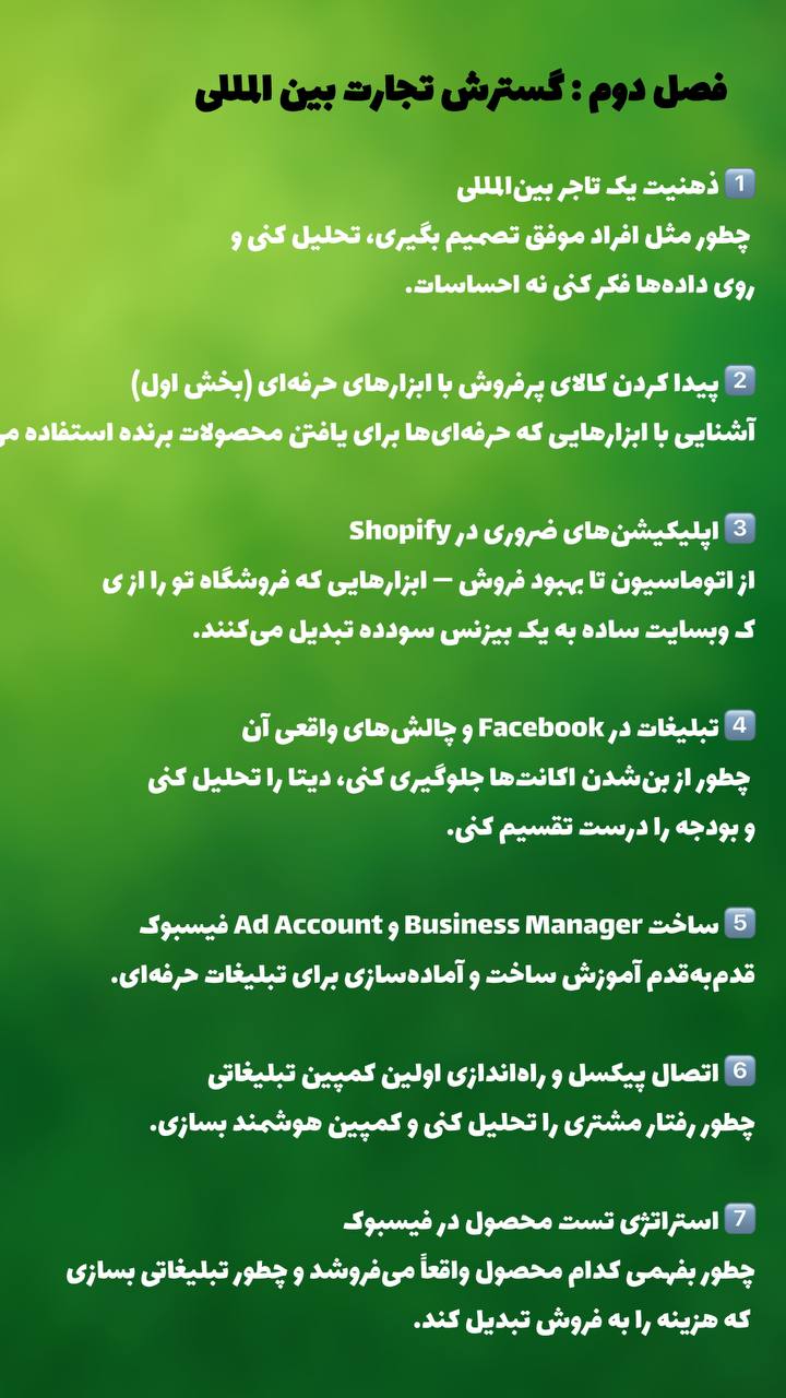 این دوره برای کسانی طراحی شده که جدی به دنبال ساخت بیزنس آنلاین خود هستند، نه صرفاً یادگیری تئوری.